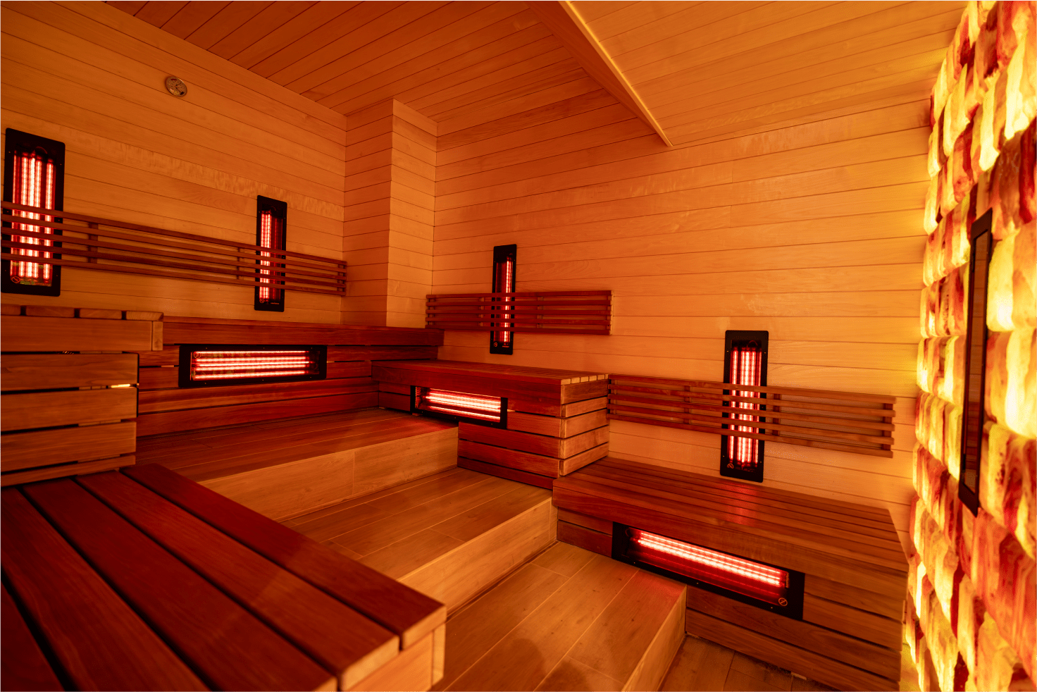 W SaunaPark Platinium znajdziesz szeroki wybór saun w Krakowie – od łagodnej sauny infrared i groty solnej po intensywne seanse w saunie ognistej i cedrowej aromatycznej.