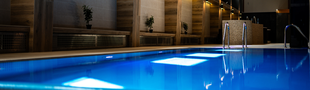 Zamknięty basen oferuje idealne warunki do pływania bez narażania się na szkodliwe działanie promieni słonecznych i wysokie temperatury. Klimatyzowane pomieszczenie zapewnia komfort termiczny przez cały dzień.