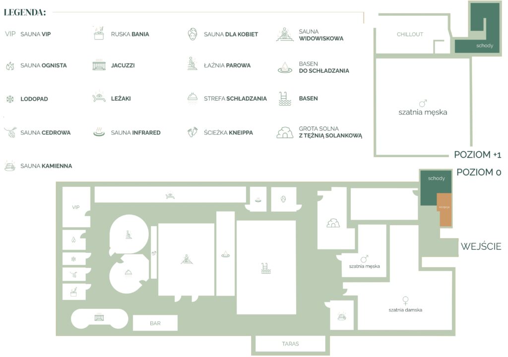 W saunarium dostępna jest również strefa relaksu z leżakami oraz strefa chillout, w której zrelaksujesz się i wypijesz kawę lub herbatę.