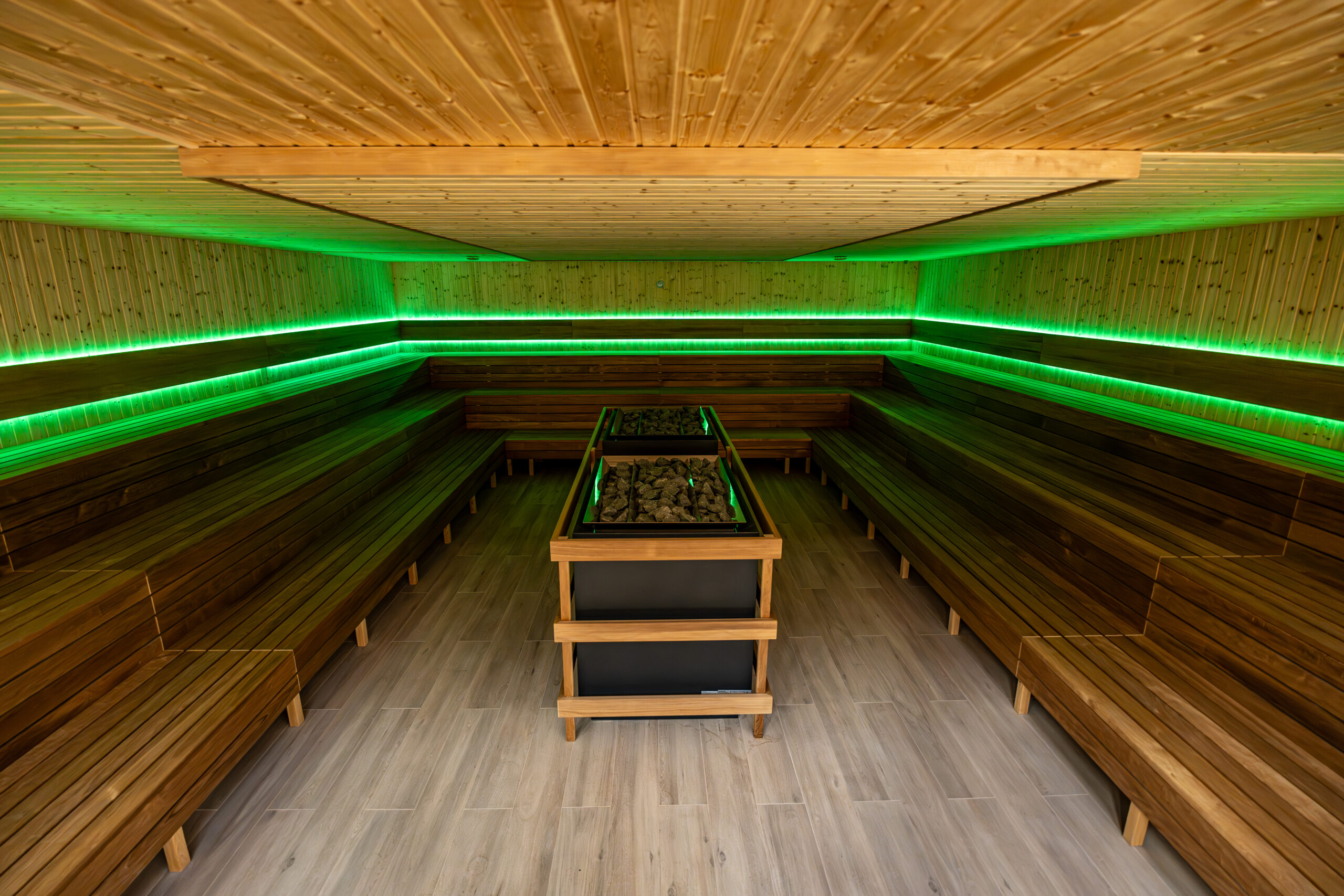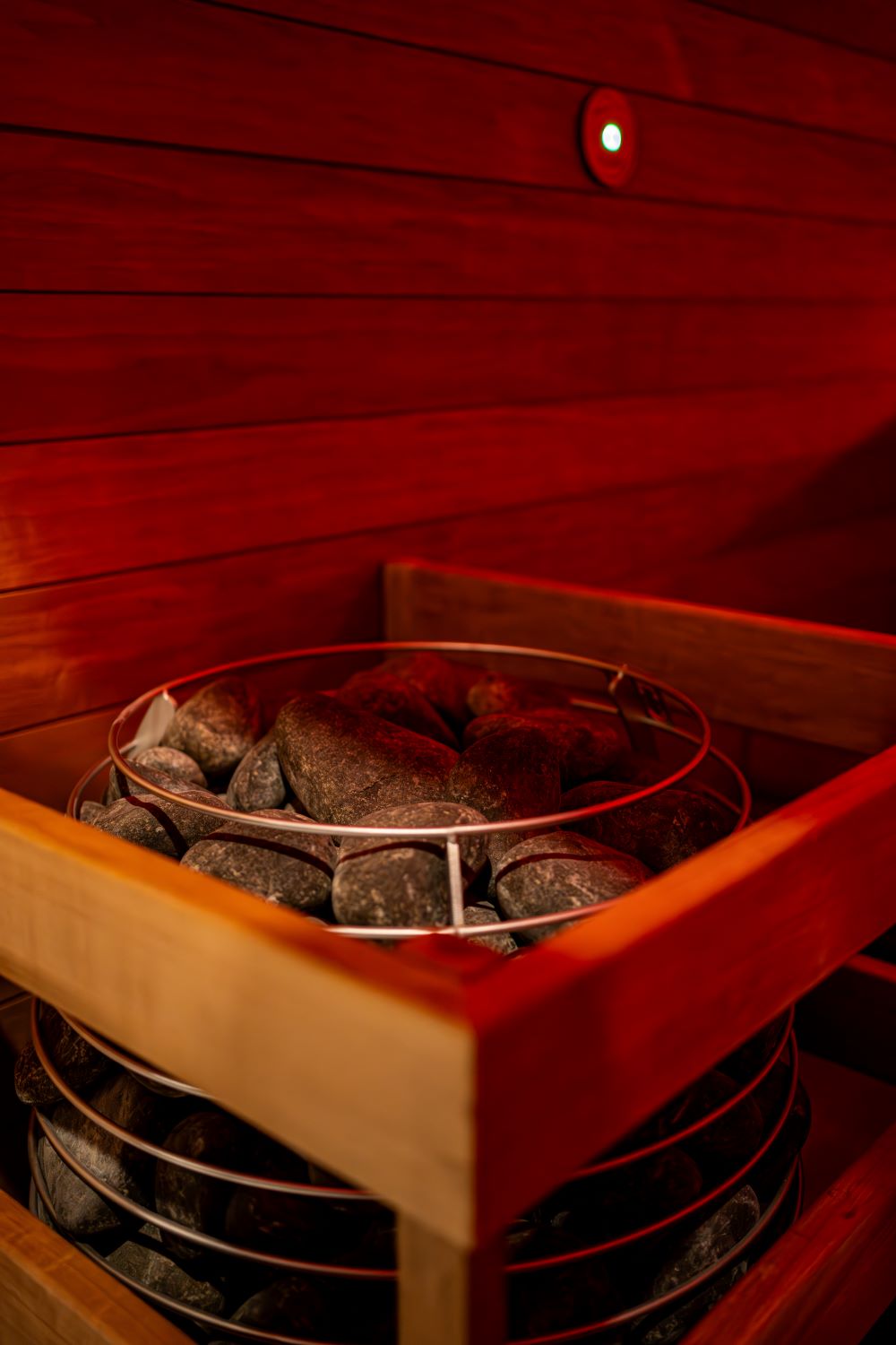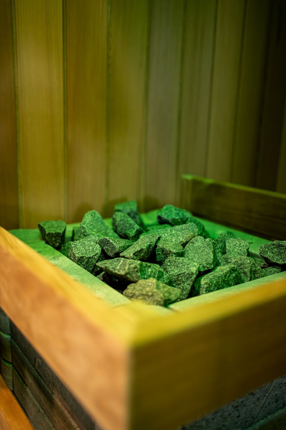 Sauna stylizowana na kamienną grotę, wyposażona w bazaltowe siedziska i piec w formie koła młyńskiego. Idealna dla osób, które nie tolerują zbyt dużej wilgotności powietrza ani zbyt wysokiej temperatury. Dzięki łagodnym warunkom panującym w saunie kamiennej, korzystanie z niej pozytywnie wpływa na drogi oddechowe i skórę. Sesja pozwala się zrelaksować i zregenerować całe ciało.