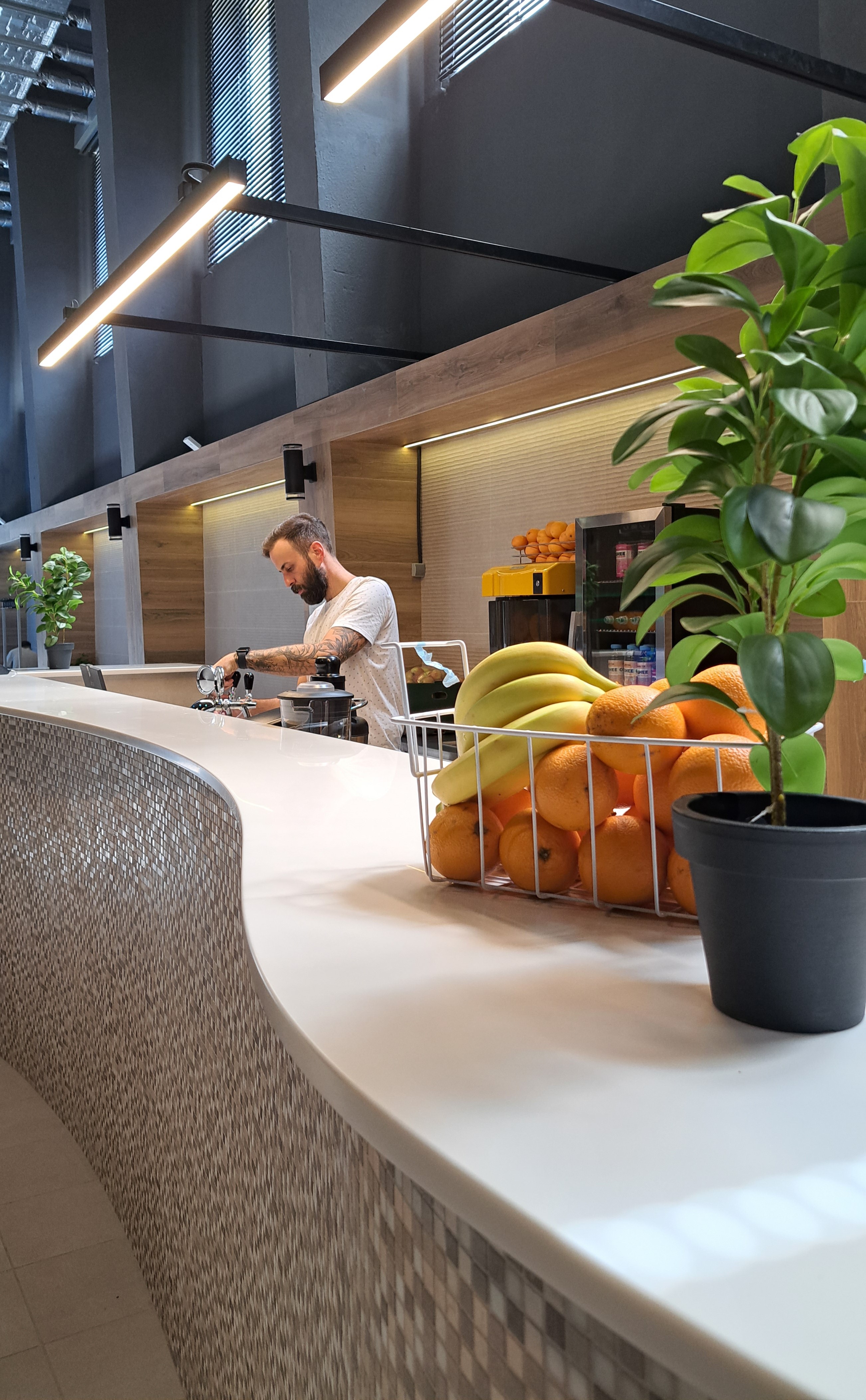 Zapraszamy do naszego baru, gdzie znajdziesz szeroki wybór napojów, idealnych na regenerację po saunie. Oferujemy świeże soki, zdrowe smoothie, napoje izotoniczne oraz orzeźwiające piwo bezalkoholowe. Do tego proponujemy lekkie i pożywne przekąski, takie jak chrupiąca granola czy soczyste owoce. Nasz bar to doskonałe miejsce, aby się zrelaksować i uzupełnić energię w przyjemnej atmosferze. Odwiedź bar po seansie w saunie i pozwól sobie na chwilę zdrowej przyjemności!