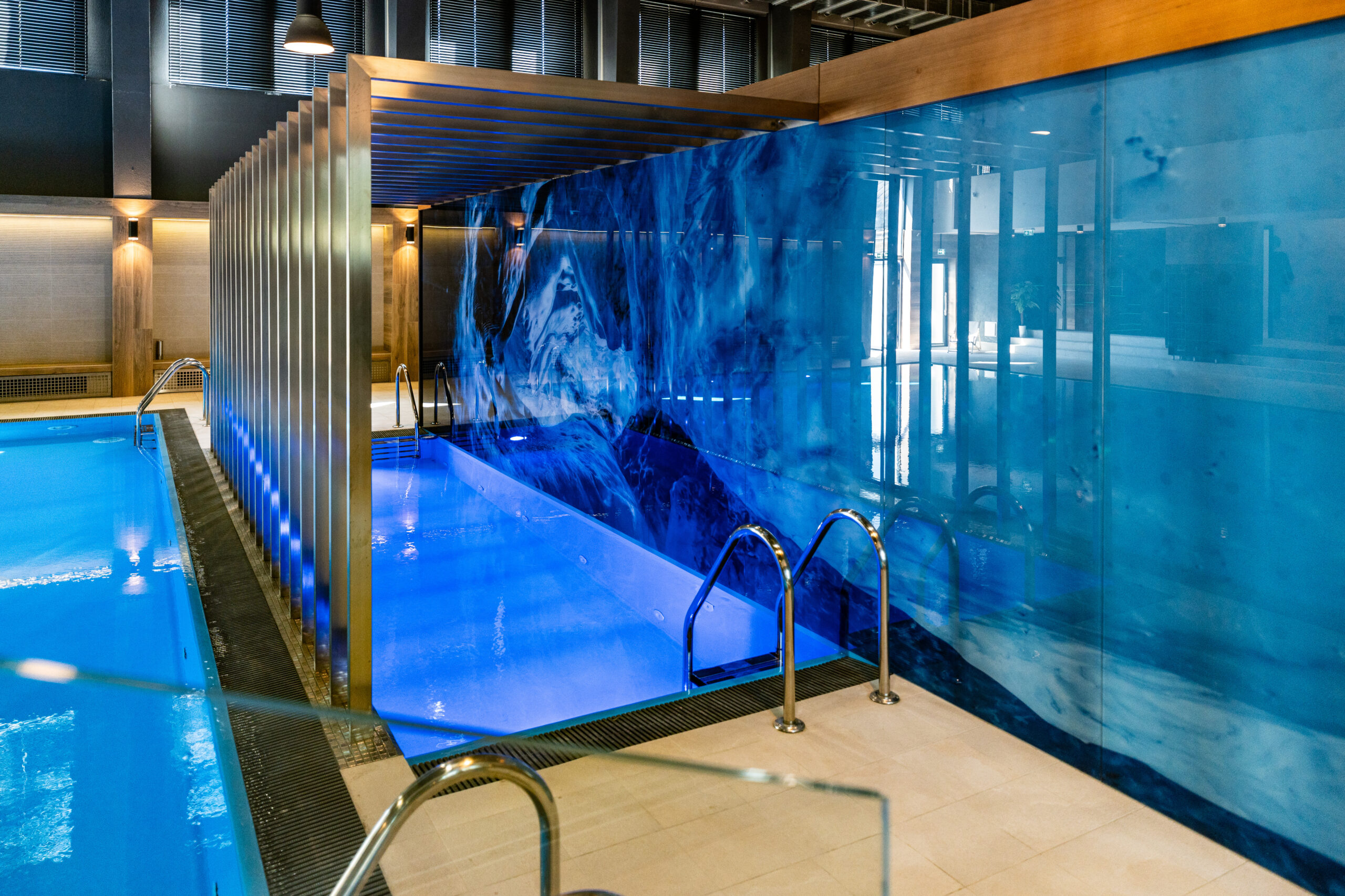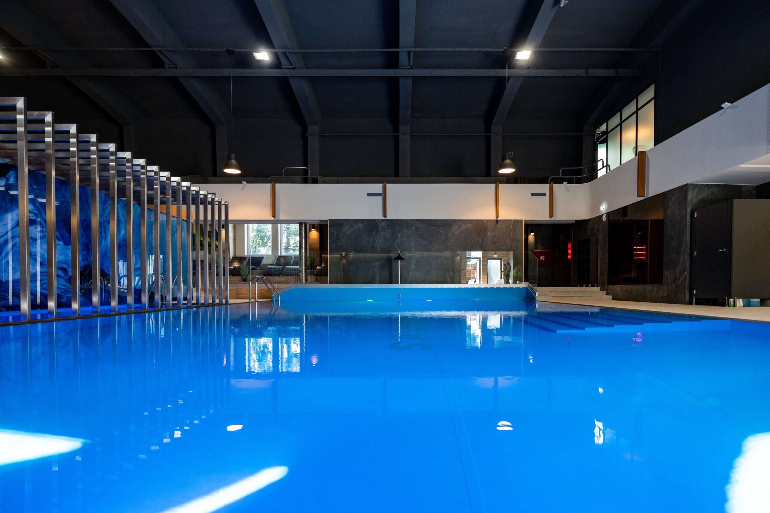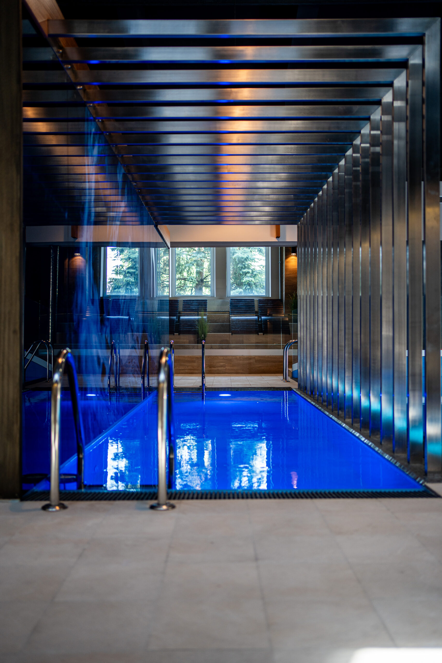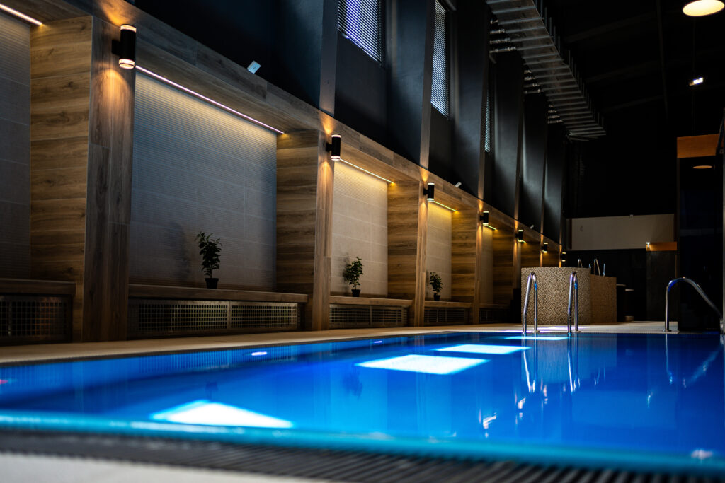 W SaunaPark Platinium znajdziesz dwa baseny – duży basen z hydromasażem, przeciwprądem i deszczownicą oraz mniejszy basen do schładzania.